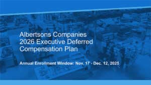 Enroll in the Albertsons Companies 2026 Executive Deferred Compensation Plan (EDCP) during the enrollment window between Nov. 17 and Dec. 12, 2025. You must enroll each year to participate the following calendar year.