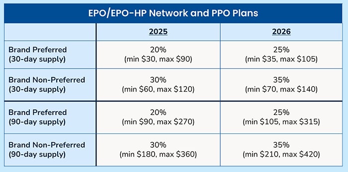 Coinsurance for brand preferred and brand non-preferred drugs are increasing as shown below.